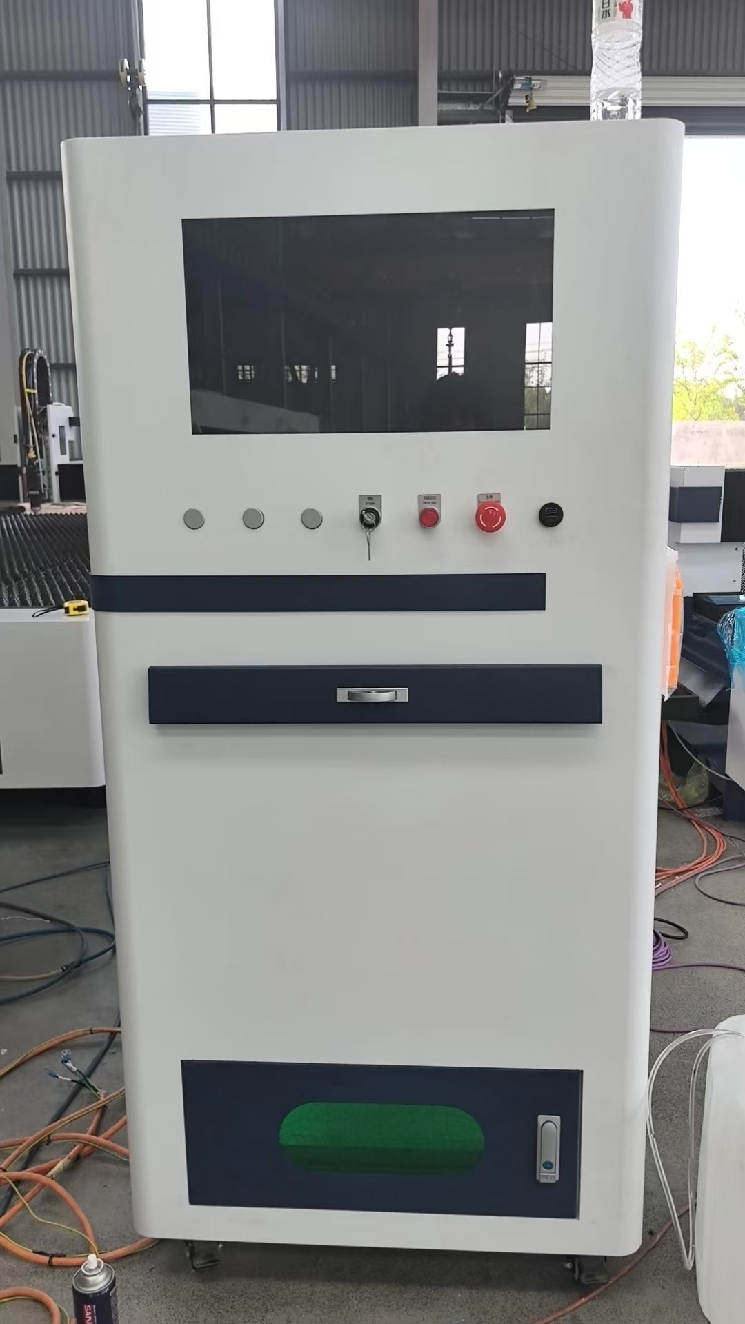 La fuente de láser (3000W-6000W) también puede poner dentro del gabinete eléctrico, que es necesario tener una mejor refrigeración por aire acondicionado exterior, que es ahorrar el espacio para la fábrica organizar
